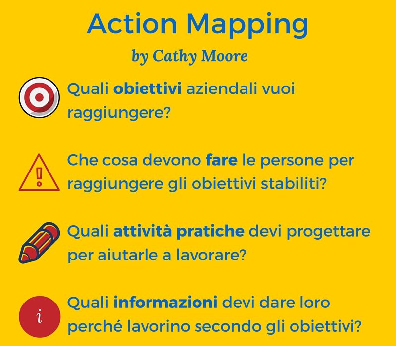 Blog / 20 Luglio 2016 Il manifesto di Cathy Moore … in italiano! Abbiamo intervistato Massimo Scali per conoscere Cathy Moore e il suo approccio alla formazione aziendale. Abbiamo descritto il suo metodo, l'action mapping, … [Read more...] about Il manifesto di Cathy Moore … in italiano!